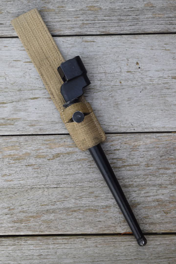 Enfield 303. No.4 rifle. Excellent- blackened socket and bright finished round blade made from one piece of steel. First 1 cm blackened. Socket is faint marked: No4 MKII and N67 (= Dispersal code for Singer) Reverse is marked /I\.