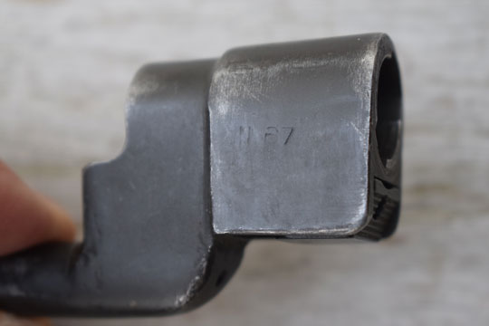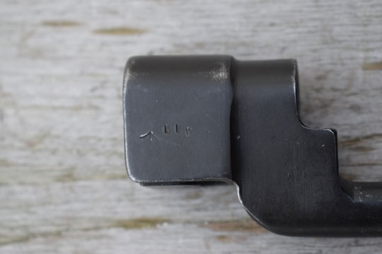 Enfield 303. No.4 rifle. Serial number: 411 on the socket. Excellent parkerized socket and parkerized round blade made from one piece of steel. Socket is only marked: N67 (= Dispersal code for Singer) Reverse is marked /I\. and the serial number 411