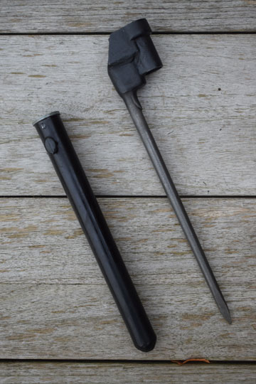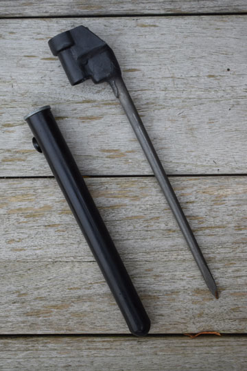 Enfield 303. No.4 rifle. Near MINT very crudely made and blackened socket, marked /I\ M 158 on the top. (= maker's code for J. Lucas Ltd., Chesterstreet, Birmingham). Excellent round parkerized blade, brazed to the socket.