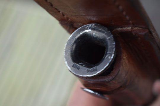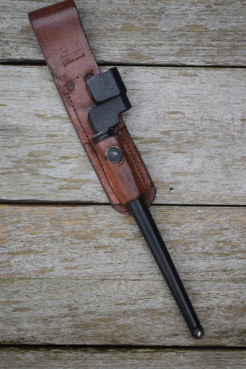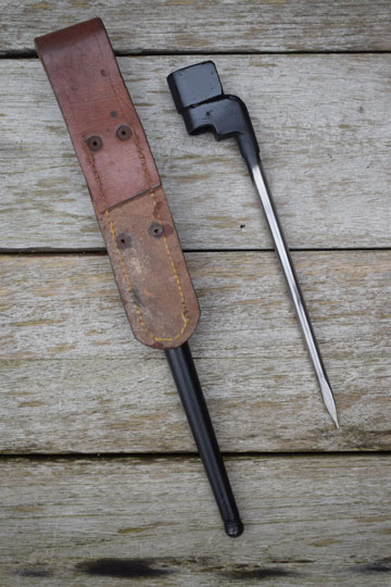 Greece issued Enfield 303. No.4 rifle. Excellent- blackened socket and bright finished round blade made from one piece of steel. First 1 cm blackened.  Socket is faint marked:  No4 MKII and N67 (= Dispersal code for Singer) Reverse is marked /I\.