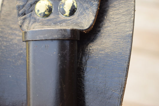 This bayonet scabbard has been designed for the Dutch Royal Marines and was used during parades with the Belgian made FN FAL Model C. socket bayonet.