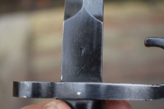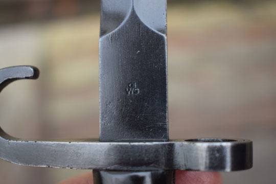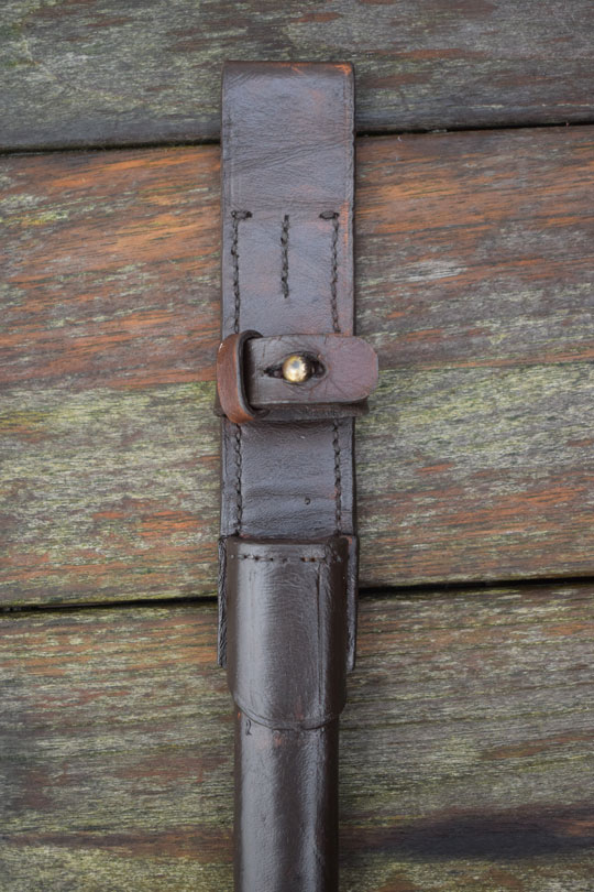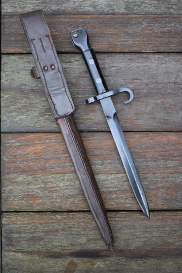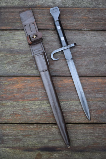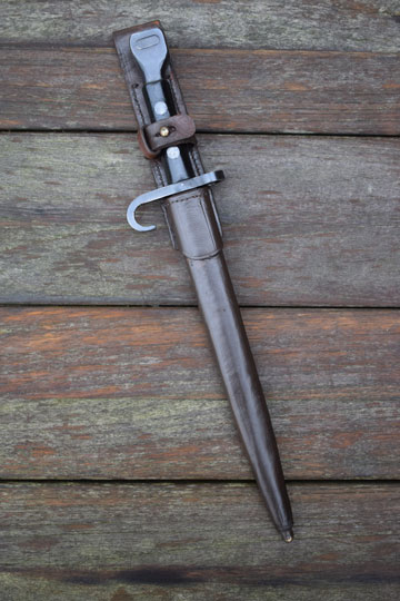 Production of the M 1895 Colonial bayonet started in 1897 at OEWG in Austria. Later production was at HEMBRUG in the Netherlands. The first bayonets were delivered from Austria with a steel scabbard. First in 1911 a brown leather scabbard was adopted.