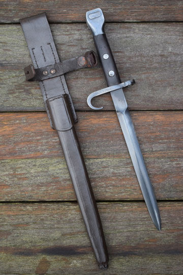 Production started in 1897 at OEWG in Austria. Later production was at HEMBRUG in the Netherlands. The first bayonets were delivered from Austria with a steel scabbard. First in 1911 a brown leather scabbard was adopted.