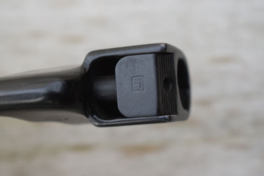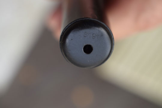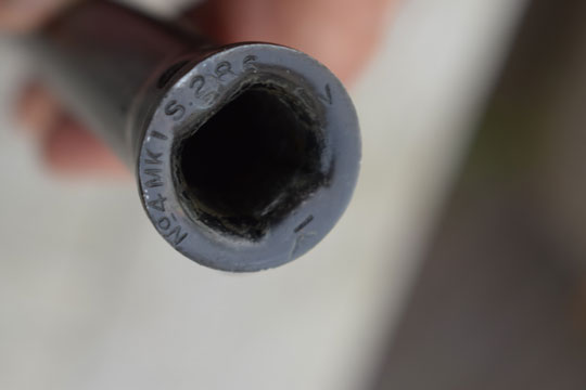 Lee Enfield 303 No.4 MKI, PM Sten MK5. Excellent + bright finished round spike blade. Excellent+ blackened socket marked: No.4 MK II and the American's makers logo: a large S in a BOX (5 mm) (= Stevens Savage). There is another large S in a box marking on the lock.