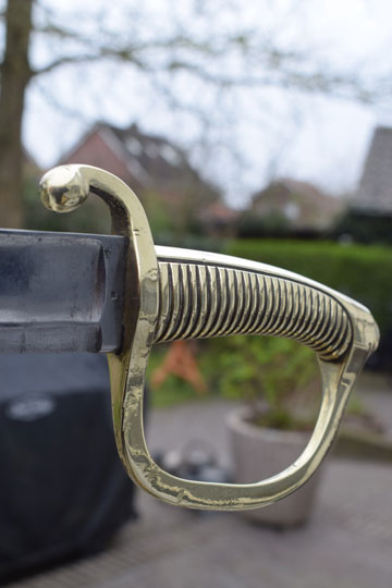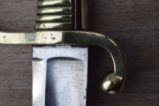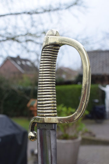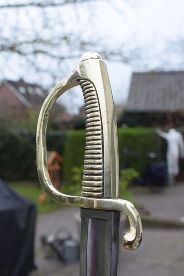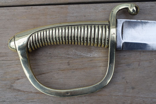 The Dutch  M 1818 No.2 Naval boarding sword was a Dutch assembled M 1803 French briquet. It differs from the Dutch M 1819 infantry short sword in details. It has a curved fullered heavy blade and not a plain straight blade. There is no acorn final on the guillon. Early type, later types are less heavy.