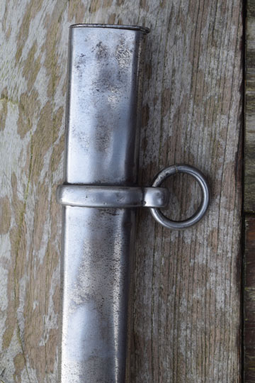 Very good chromium plated scabbard with a single loos hanging ring. There is wear to the plating as usual. No serieus dents, only user spurs.