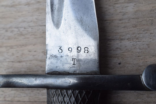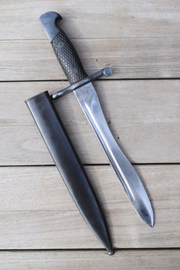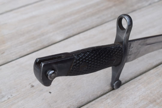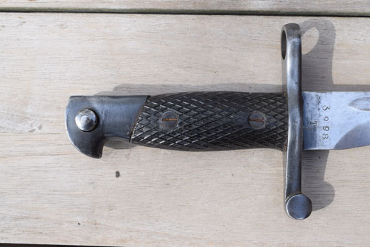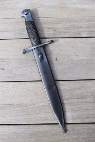 These arsenal refurbished M 1941 bayonets were dark parkerized and fitted with a black plastic grips. They were used by the Spanish Navy and are not common.