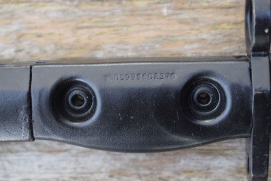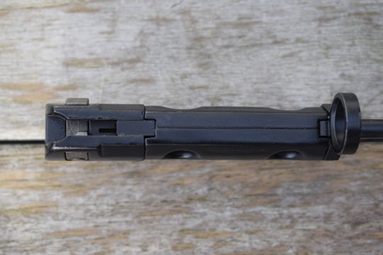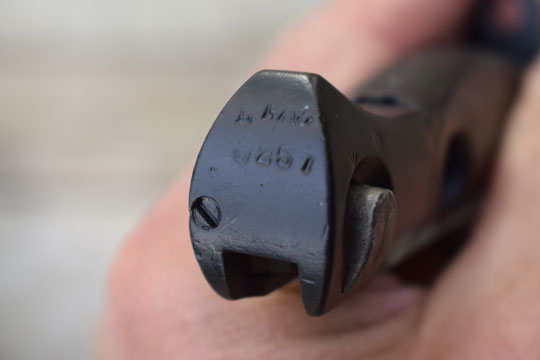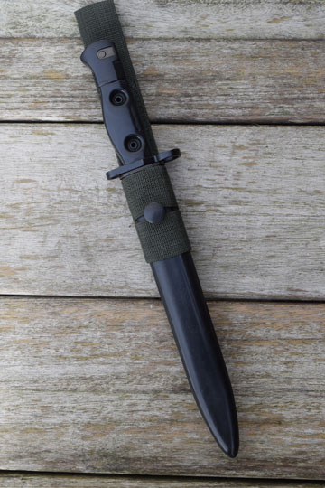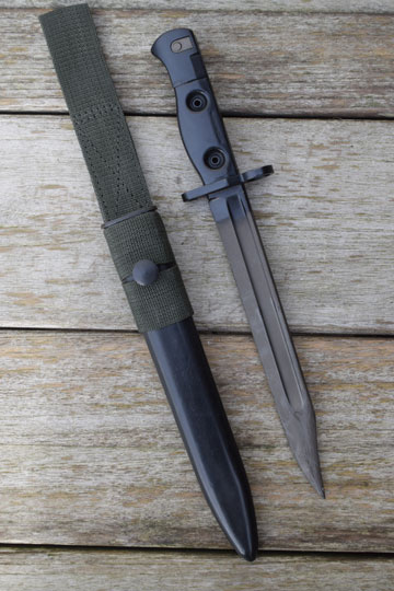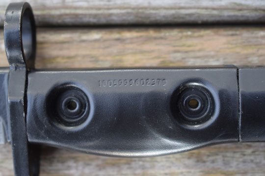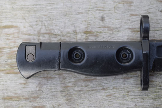 Black sheet metal grips are riveted to the tang by two hollow rivets. Both grips are crisp NATO code marked: 1005999502379 only.