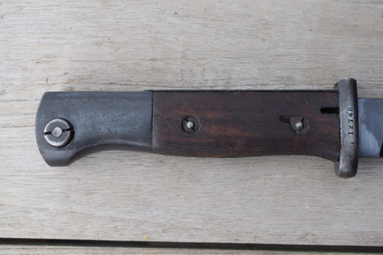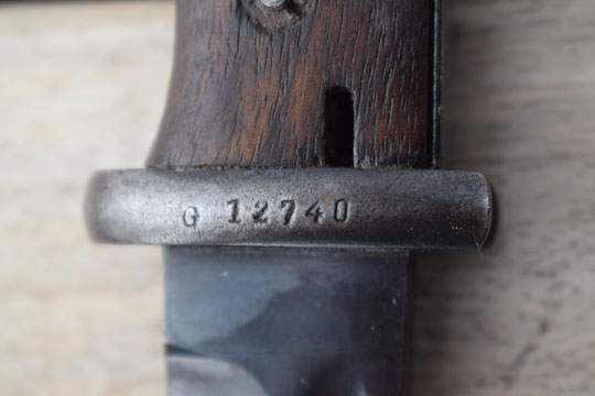 The contract was delivered in two batches. The first, with serial numbers on the pommel, in 1937. This is a bayonet out of the second delivery (1941) of the German-Portuguese contract with a serial number on the crossgard.