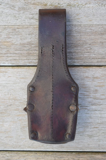 Polish M 1924 bayonet frog: Excellent dark brown leather bayonet frog with a T-shaped opening to carry the Polish made WZ Mauser rifle and carbine bayonets: M1922, M1924 and M1928, but also Polish used German M 1898/05 bayonets and French 1886, 1886/16 bayonets. 6 rivets and washers and a retaining strap with a steel buckle.