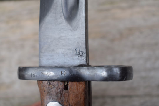 Yugoslavian Zastava M 1948 7.9 mm carbine. Serial number: 03172 Matching! on the ricasso. Superb deep blued minty fullered blade with Yugoslavian makers name and two unusual cyrilic inspection stamps: 1 in a box and 1 in a circle on the ricasso. Deep blued pommel an crossguard with muzzle ring MRD 15,5 Crossguard is marked: 1 in a box and 1 in a circle. The same marking are stamped on the crossguard facing the blade.