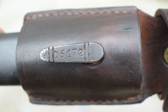 Minty deep blued steel scabbard. Matching serial number: 03172 on frog stud and 1 in a box and 1 in a circle stamped on the throat. No dents