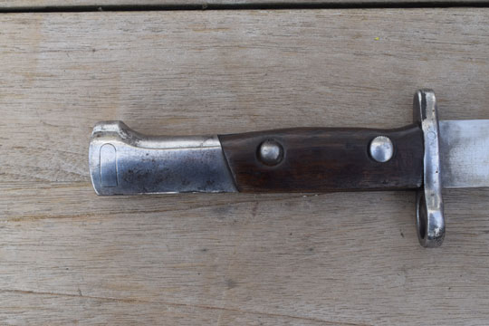 Excellent wooden grips secured with screw bolts to the blade tang. Oil hole in grip.