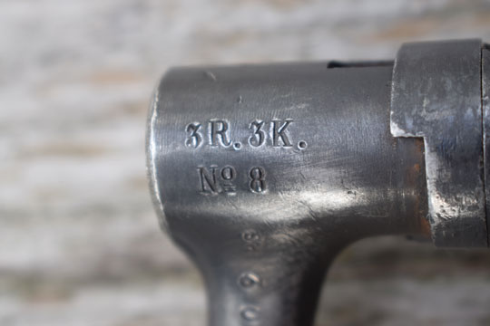 Swedish Remington Rolling block rifle M 1867, Cal. 12.17 mm. Serial number: HH 4400 P.S on the shank. Excellent blued socket, MRD 18.8 mm. and long cruciform blade with a sharp point. Right side of the shank shows Swedish makers trademark: Crown over C (= Carl Gustafs Stad) and two Swedish inspector markings: OK and NT