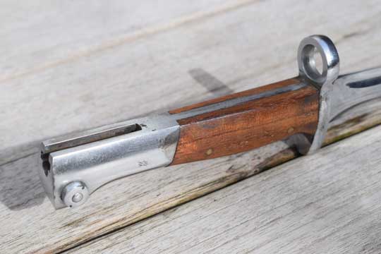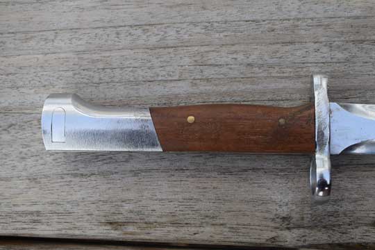 SAFN 30 rifle. No serial number. Minty chromium plated double edged blade. Plated pommel with working T-O slot. Plated crossguard with muzzle ring. MRD: 15,5 mm. Minty wooden grips secured to the blade tang by two brass pins.