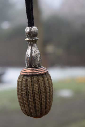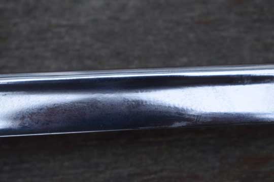 Excellent chromium plated steel scabbard with a single loose hanging ring and no dents.