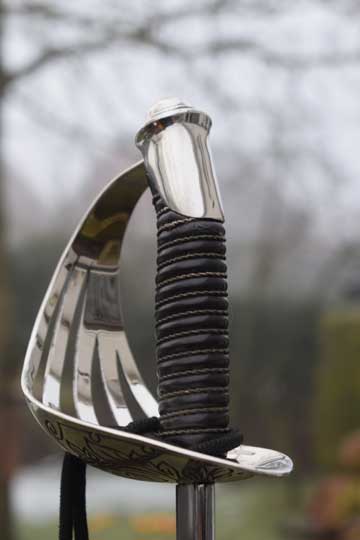 This Infantry officers sword was adopted in 1897 and was already replaced in 1912 by a complete different model: M 1912 infantry officers sword. It still has a ceremonial function for officers of the Dutch Guard Fuselier Regiment Princes Irene. A Dutch infantry Guard Regiment, founded in England during WWII and active during and after D-day for the liberation of occupied Europe.