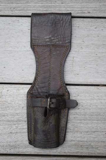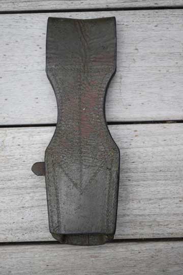 Brown leather frog only for M 1909 Artillery / Infantry short sword. Very large brown leather frog with traces of green paint. A retaining strap over the front pocket with a steel buckle.