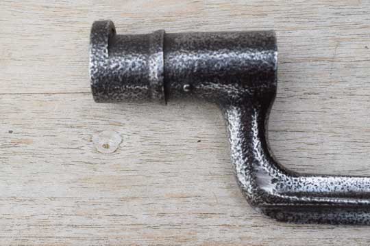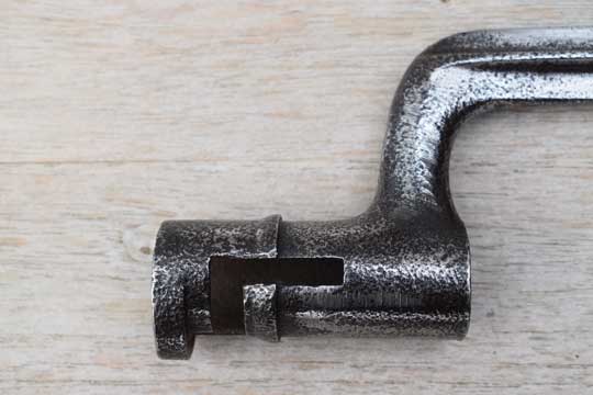 Austrian trial rifle around 1798. No serial number. Long bright finished cruciform blade with two very faint inspection markings on the base of the blade. The blade is fine peppered. Pitted socket with no visible markings or serial number. The locking ring is missing. Hence the price.