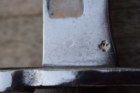 Excellent smooth wooden wartime replacement grips. Variation: unusual fixed to the blade tang by 4 steel pins and not by 3.