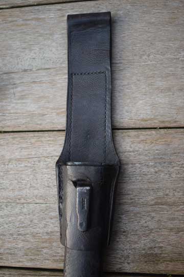 Excellent and correct black painted steel scabbard with no dents.The frog stud is Austrian maker marked: JUNG and an Austrian Crest.