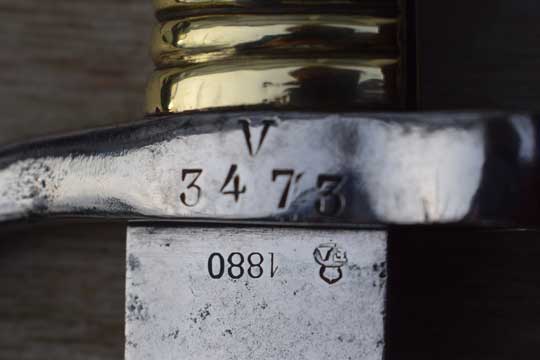 Very nice and impressive M 1880 sawback Engineers bayonet. An early one dated: 1880.