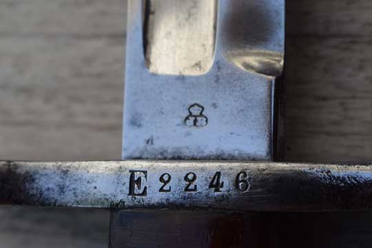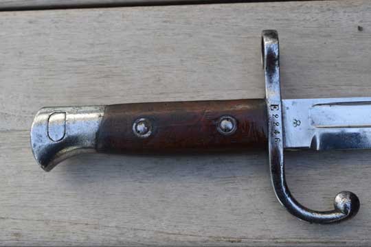 Belgian M 1889 Mid-length Home Guard bayonet. Unit marked for District Brussels. Matching number.(ABCN566-1)(K221)(JN0)