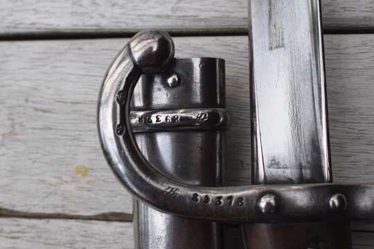 Belgian M1874/89, modified French M 1874 Gras bayonet (ABC N 1508-2)