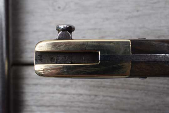 Belgian M 1889 Mauser rifle. Serial number: H 89378  Matching! on the guillon. Superb bright finished T- shaped blade, marked: Mre. de'Armes de St. Etienne. Febr. 1877 very crisp on the blade spine. Two French inspection markings on the crossguard. Excellent brass grip, extreme straight grinded, almost in line with the blade. Excellent wooden grips riveted to the blade tang. Diverse French inspection markings on the crossguard.  Mortise slot is marked: P.F  and blade tang with a small R.  Excellent bright finished crossguard with quillon and a not altered muzzle ring. MRD 17.4 mm.