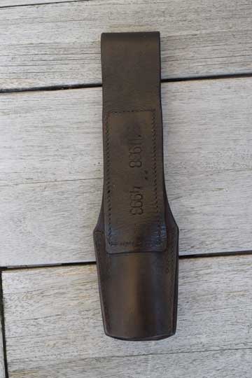 Czechoslovakian bayonet frog for M 1888, M 1895, M 1924 bayonets. Near Mint dark brown leather bayonet frog.