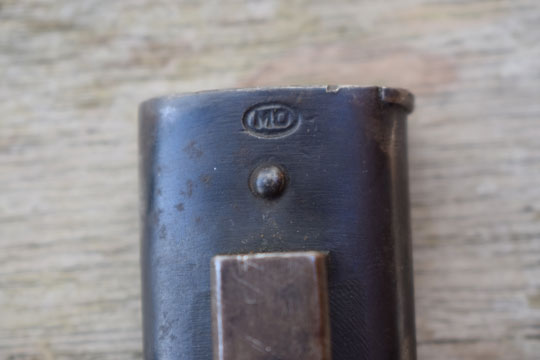 Excellent black painted scabbard with no dents, U on a circle, Matching serial number: 10 on the frog stud and MO in an oval (=Moravske Ocelarny=Moravian Steelworks.)  near the throat.