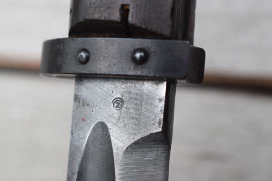 Seitengewehren 24(T) were newly made by the Germans without a muzzle ring during the German occupation of Czechoslovekia in 1940-1943. These were made at Brünn Werke, Brno (these were "dot" stamped) and at Bystrica Werke. The Bystrica made bayonets were produced in much smaller numbers than the dot marked bayonets and are quite rare! They produced 115.000 bayonets only.
