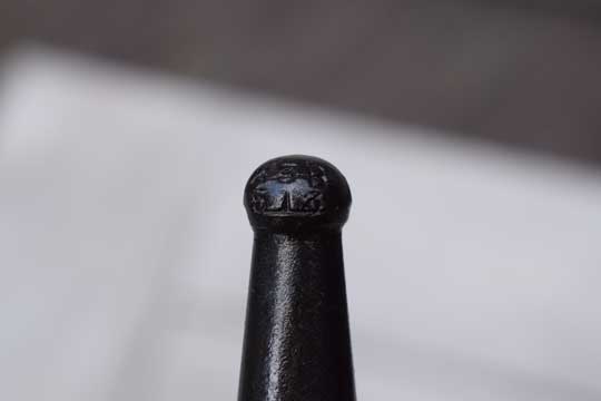 Minty tooled black leather scabbard with dents free fittings. Working save in top mount. Chape with regimental marking: 23 R over 512
