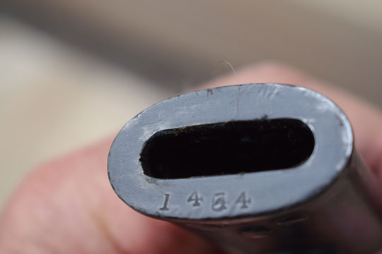 In order of the Admiralty, Wilkinson swords company made a last production round on P.07 bayonets for the 9 mm Sterling M 1941 Lanchester submachine gun, which was issued to the Royal Navy and the Royal Air Force. This one has no Wilkinson dispersal code, so this particular one was issued to the Royal Air Force.