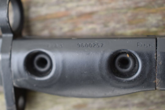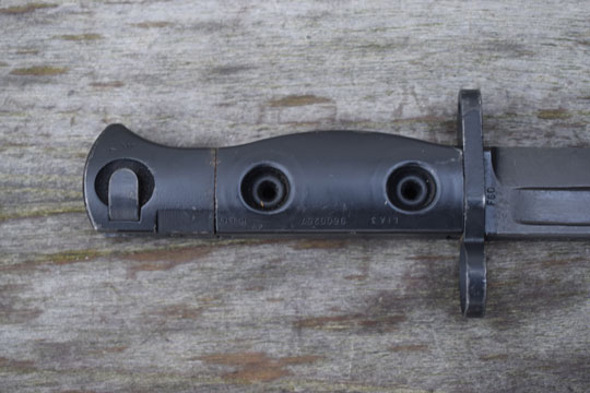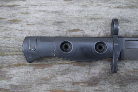 Black sheet metal grips are riveted to the tang by two hollow rivets. Both grips are crisp NATO code marked: L1A3 9600257. Both grips are dated Ð66.
