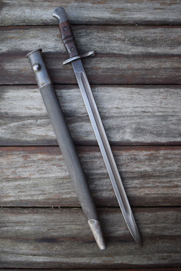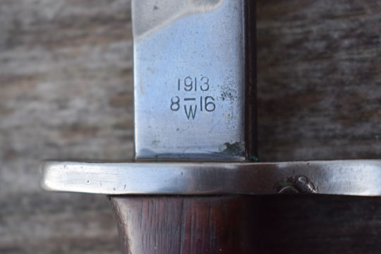 This bayonet was a part of the English WWI rifle and bayonet contract. It was made by Remington and Winchester. Remington produced 1.243.000 bayonets. Winchester 225.000 only!.