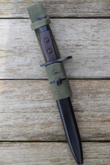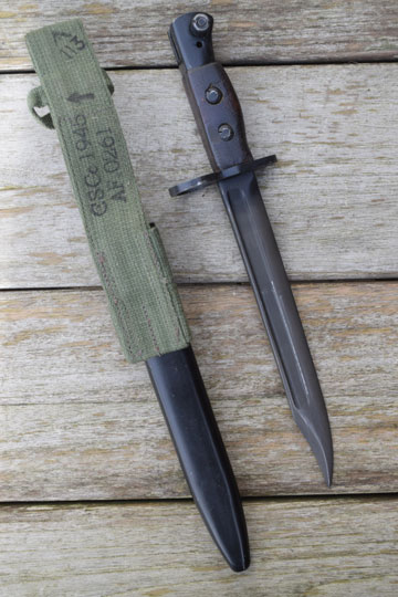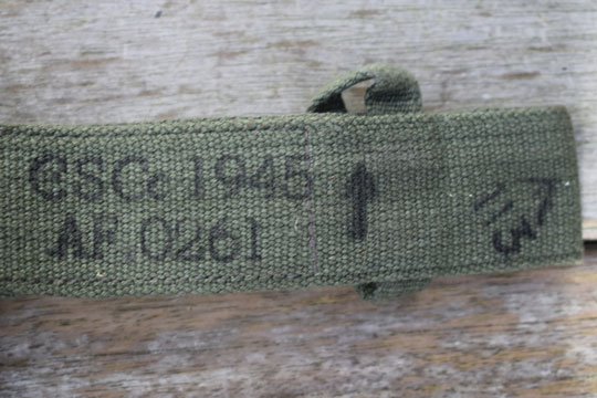 Comes with its Minty and genuine P 1944 jungle belt frog. Two loops on one site and a retaining loop. Eyelet for No. 4 bayonet. Reverse side is crisp stamped: G.S. Co.1945 /I\ over catalog number: AF 0261. and /I\ over 113