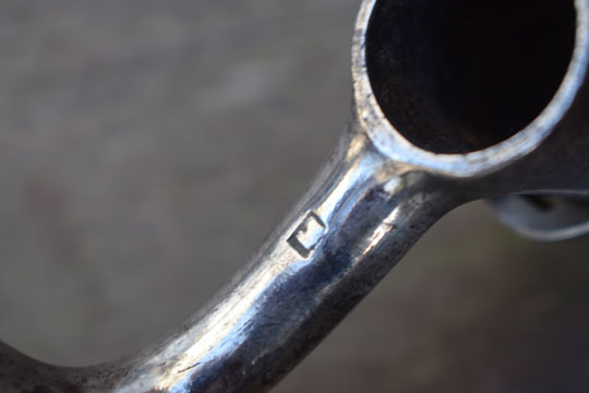French M 1822 Infantry rifle. Serial number: 635 on the left shank. Excellent bright finished cruciform long blade. Socket with a Z-shaped slot and a locking ring with a securing screw on top of the body. Ricasso is marked L F over an inspection mark: L in a circle (= Revisor F. L. Lobstein 1804 - 1822) over 3. Front of the shank is marked wit a square stamp.
