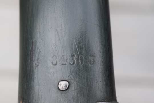 Excellent+ unaltered fieldgray painted steel scabbard with some user spurs only but no serieus dents. Serial number: S 84303