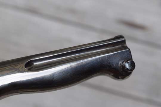 Mannlicher Berthier M 1890 Gendarmerie carbine. serial number: F 45399 crisp on the quillon. Excellent- long bright cruciform blade with some staining and light peppering only. A small French single inspection marking on the ricasso. Excellent Berlin - silver grip with mortise slot and press stud to the left side of the top of the pommel A long concave groove on the left side of the grip. Pommel is marked with two small French inspection markings P in circle. Bright crossguard with two small inspection markings and a muzzle ring: MRD 13 mm. A forward swept quillon.