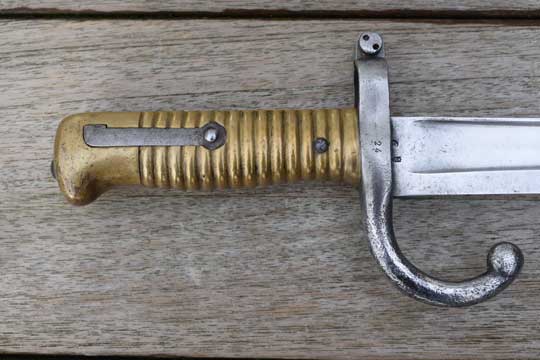 German captured French Chassepot M 1866 bayonet by Mutzig Arsenal 1869. German unit marked. (ABCN1804)(K0)