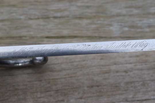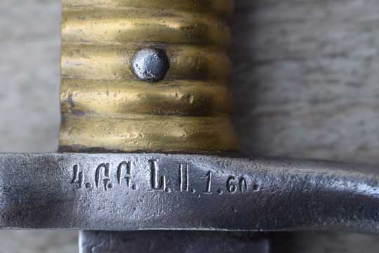 Excellent German used French M 1866 with very interesting unit marking. Made in 1869, so this bayonet must have been used by the French and captured during the French-German war of 1870-1871
