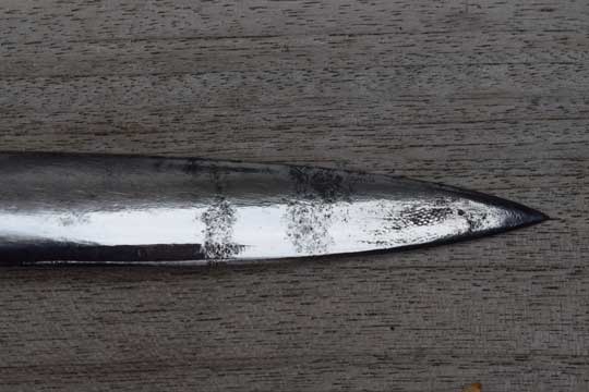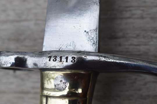 This piece is interesting that yes, is has a serial number (unusual!), but no makers name on the ricasso, no Cypher and date on the blade spine and not a single inspection marking on the hilt at all! These are not taken out.