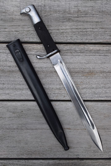 This is a high quality Imperial (WWI ) private purchased officers bayonet! These pretty rare non functional WWI Kurzes are not made of chrome plated white metal like the WWII dress models, but from bright polished steel. These are very well made Kurzes and are produced around 1910.