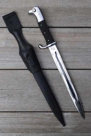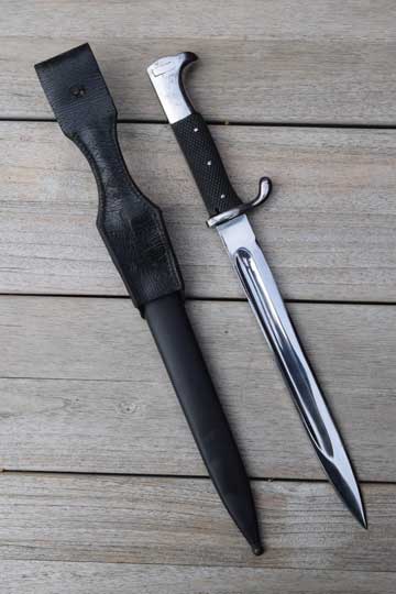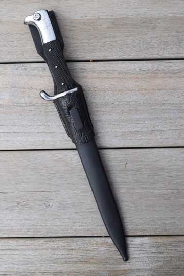 Comes in its very good and correct black patent leather dress belt frog as found. This model was used during WWI, The Weimar Republic with the Ks98 bayonets and other dress, walking out, bayonets. (AC 296)