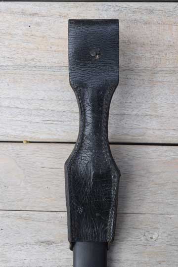 Excellent and correct blackened metal scabbard with an Austrian style frog stud and no dents. Blade length 25,4 cm.