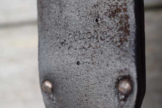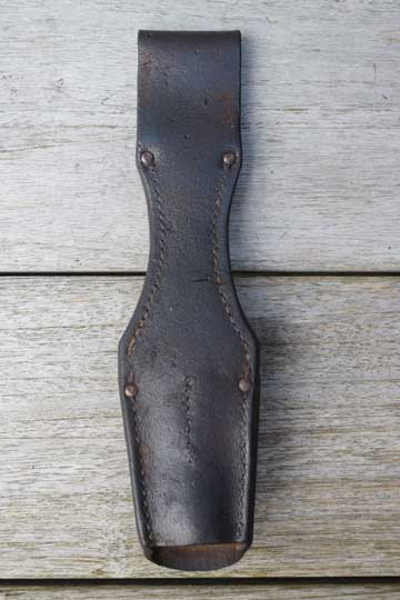 German made dark brown K98 leather bayonet frog for all WW2 M 84/98 models. 4 Aluminium rivets and no central stitching. All stitching intact. Reverse side is faint marked with a the German makers name: E O GÖTZE & Sohne over Gensdorf . (This company made frog from 1938 -1942) and a faint L.B. A stamp (= Luftwaffe Bekleidungsambt.)