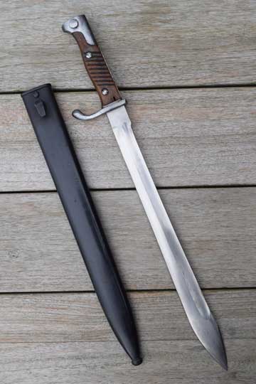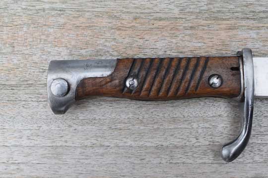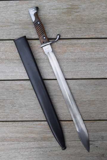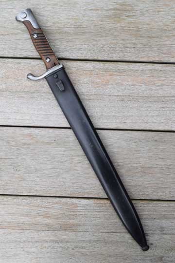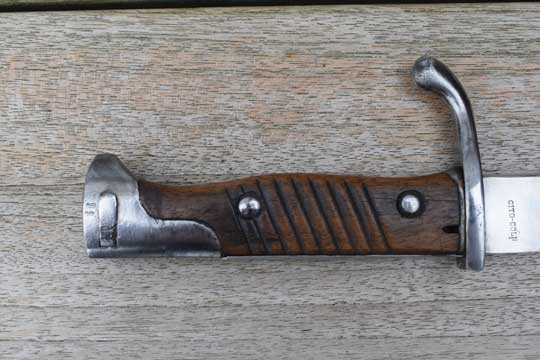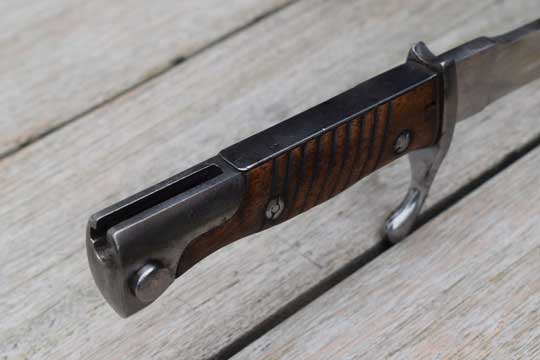 German Mauser M 1898 Rifle and Carbine. Superb bright finished fullered "bucher" blade. The saw back is removed. The extremely rare German makers name: CITO-CÖLN (= CITO in Cologne) on the ricasso. No cypher and no date which is usual for this maker. Excellent pommel, flash guard, crossguard and quillon. Two German inspection markings to the pommel. This is unusual for this maker! Excellent ribbed wooden grips with oil hole. T-O slot in pommel.