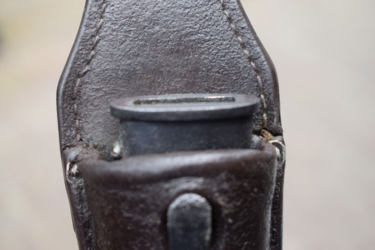 Comes with its Excellent very thick brown WWI leather frog with 4 alloy rivets and no central stitching as found. Hard to read makers name in a box on the reverse.