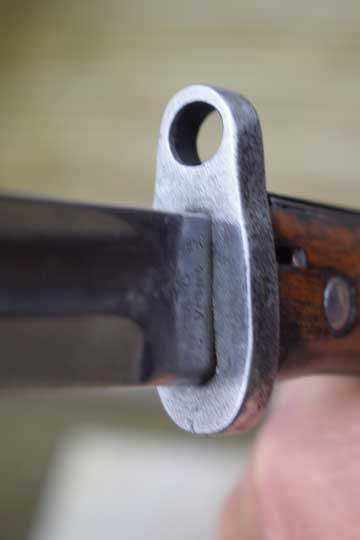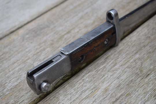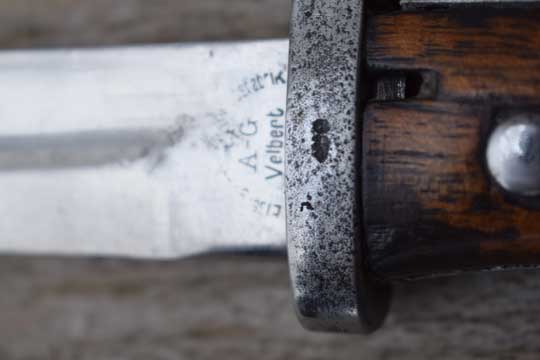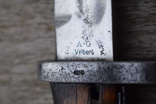 Experimental Mauser M88/95 rifle. Model 95-17 trials bayonet. Excellent bright finished fullered blade with German maker's name : Eisengiesserei-und Schlossfabrik A. G. Velbert in a half circle on the ricasso.